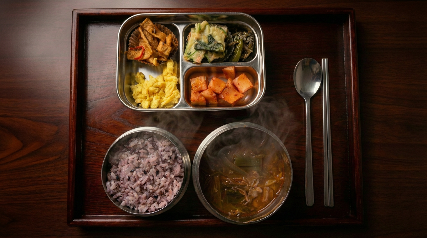 국, 밥, 메인 반찬까지 따뜻하게 제공되어