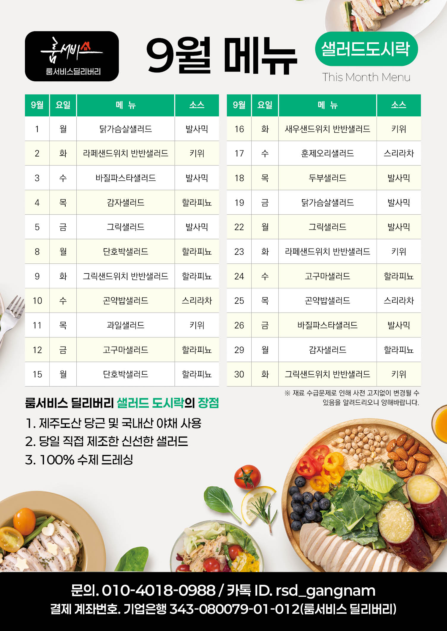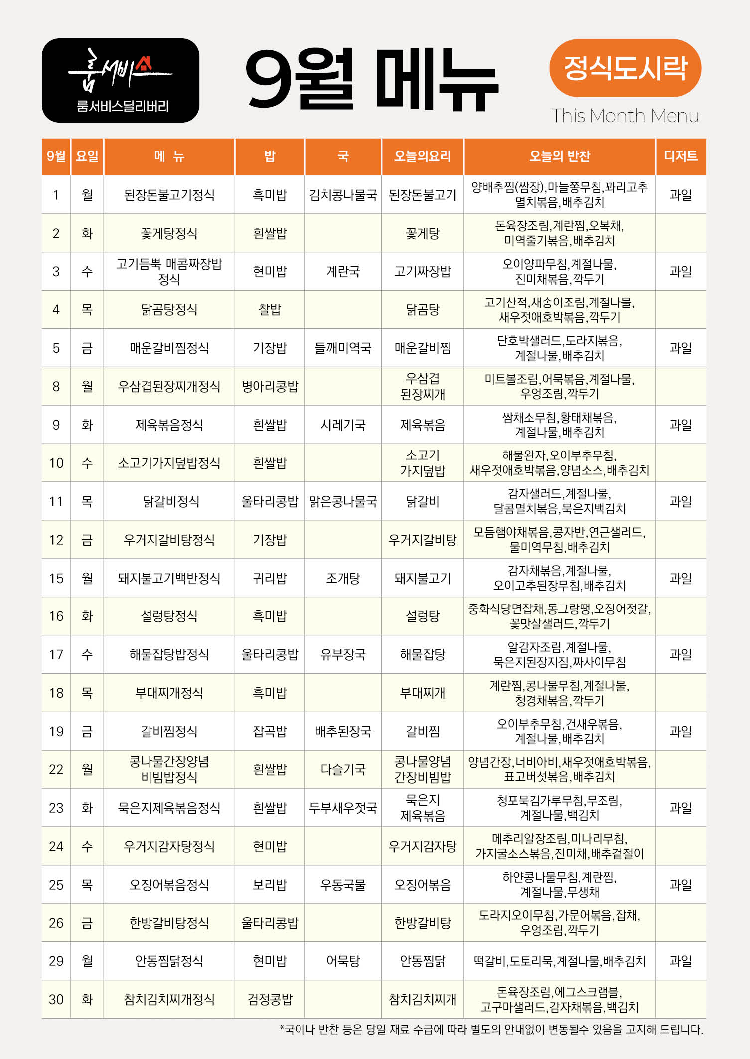 2025년 9월 메뉴